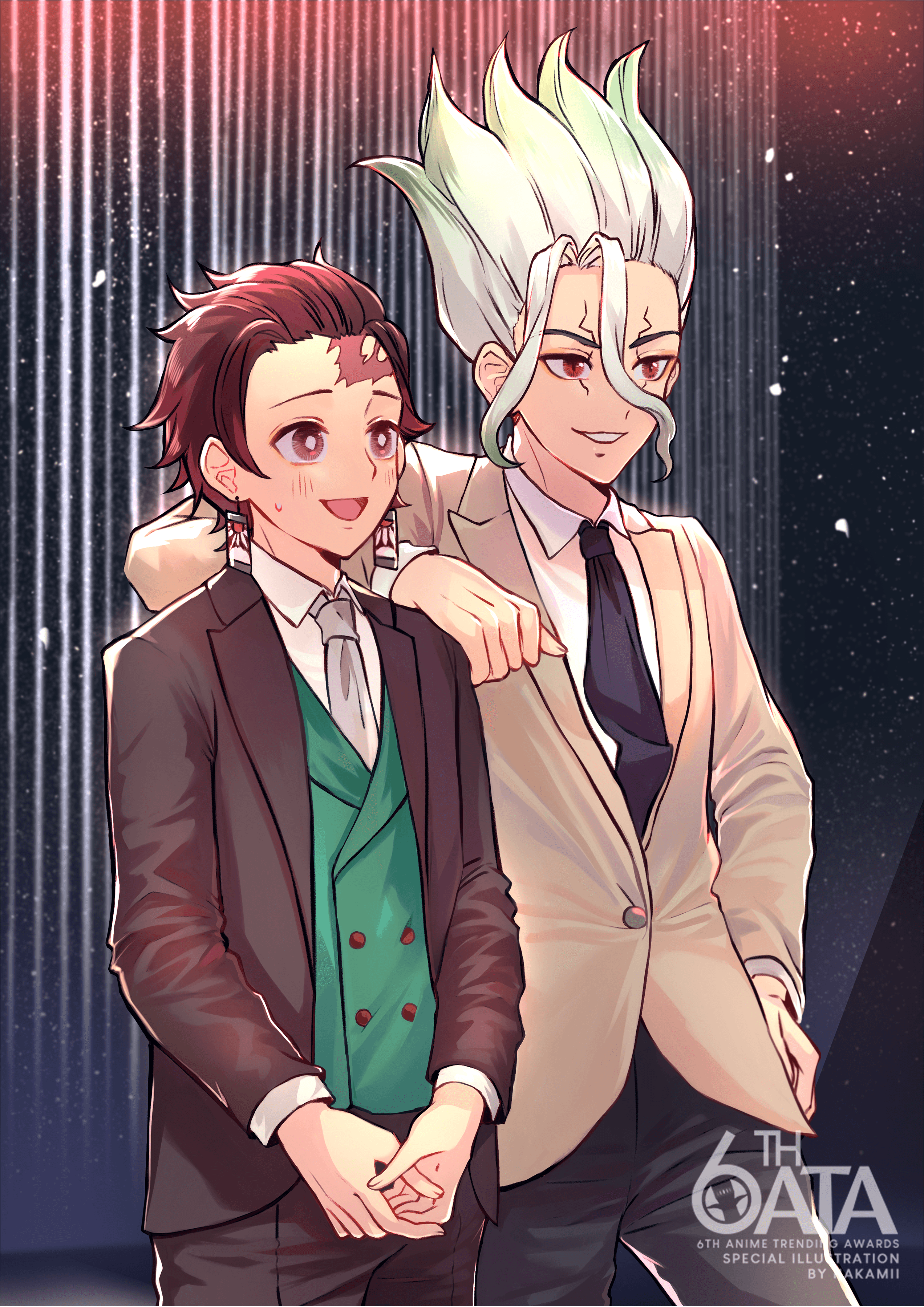 Senku Ishigami and Tanjirou Kamadou awaits the announcement of who won between them for the title of Man of the Year